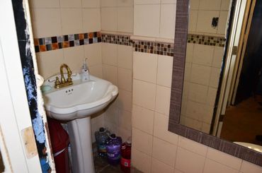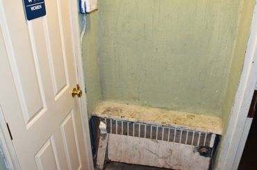 The women’s bathroom needs updating including new tiles, paint, new fixtures, door etc.